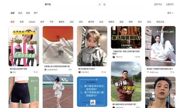 在小紅書上搜索“暴汗服”得到的結(jié)果(截屏圖)