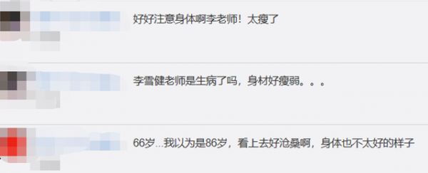 其實(shí)看到李雪健老師的近照之后,一些網(wǎng)友也評(píng)論到李雪健老師身子骨太瘦了,不過(guò)如今已66歲的李雪健老師,身體本應(yīng)該硬朗才對(duì),如今看著卻如同病殃殃跟80多歲的老人差不多,所以說(shuō)它的狀態(tài)以及健康是引起粉絲擔(dān)憂(yōu)的關(guān)鍵。也有粉絲留言道:好好注意身體啊,李老師太瘦了,李雪健老師是生病了嗎?身材好瘦弱。