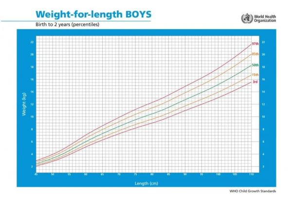評估孩子胖或者瘦時,對于2歲以下寶寶,我們可以在身高別體重曲線上標記來進行判斷,按照WHO標準在98百分位以上才算是超重,一般實際應(yīng)用中我們是按照第97百分位為標準。
