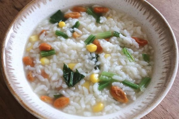 菠菜、玉米粒、枸杞子各15克,大米100克,鹽3克,味精1克。