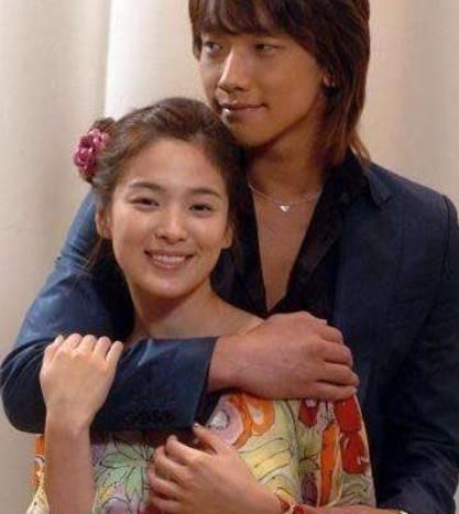 可能是因為以前的韓劇幾乎都沒有什么濾鏡,所以那時候的演員們看起來都膚色很自然,那個階段的RAIN甚至看起來還有點黝黑。穿著一件藏藍色的襯衫搭配上那時候最流行的長發(fā)造型,身材高挑脖子很長的他看起來也很有范兒。那時候的男星都很流行把襯衫當做V領穿,只扣上一兩個扣子,露出自己的胸肌。感覺還是挺帥氣的,和懷里穿著花裙子的宋慧喬也顯得很般配了。