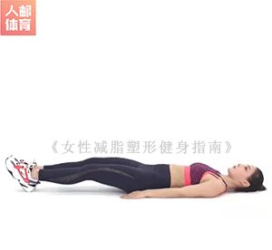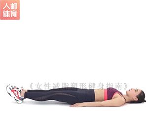 1.身體仰臥于墊上,雙腿交疊且向上伸展抬起至髖關(guān)節(jié)呈90度角,雙臂自然伸展于體側(cè)。
