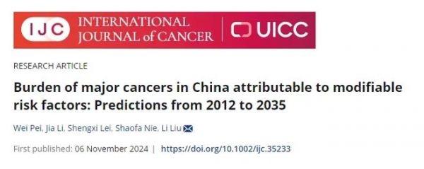 ①Burden of major cancers in China attributable to modifiable risk factors: Predictions from 2012 to 2035.International Journal of Cancer.