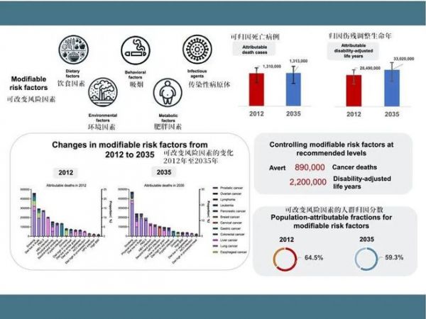 結(jié)果顯示,可改變風險因素導(dǎo)致的癌癥數(shù)量將繼續(xù)上升,但比例有所降低。