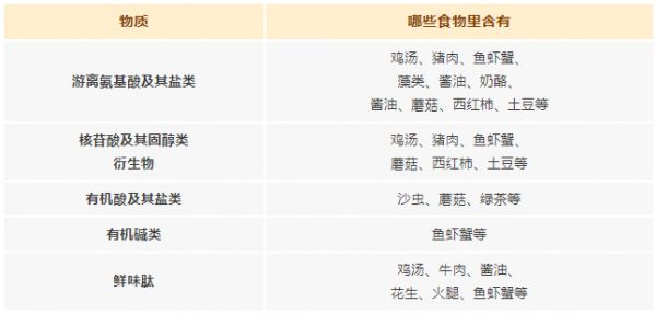 可以發(fā)現(xiàn),同一種食物中會含有好幾種不同種類的鮮味物質,它們之間可以相互協(xié)同增強,讓食物的鮮味更為獨特。