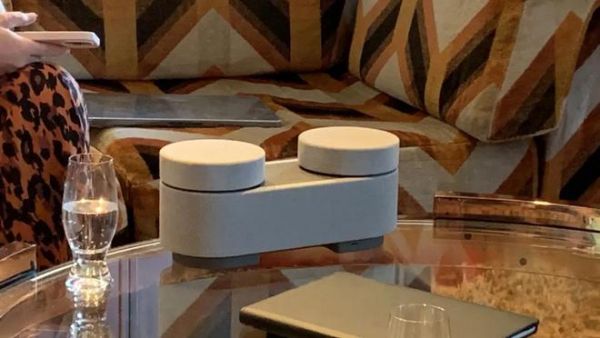 據(jù)悉,該“便攜式影院系統(tǒng)”本質(zhì)上是一個(gè)分體式的藍(lán)牙揚(yáng)聲器,其外表采用類織物風(fēng)格,使用回收的 PET 瓶打造而成,頂部?jī)蓚€(gè)“蓋子風(fēng)格”的模塊可以拆卸,作為獨(dú)立的便攜式揚(yáng)聲器放在房間內(nèi),打造“360 度空間映射”立體聲場(chǎng)景。而當(dāng)“蓋子”扣在揚(yáng)聲器主體時(shí),則作為傳統(tǒng)藍(lán)牙揚(yáng)聲器使用。