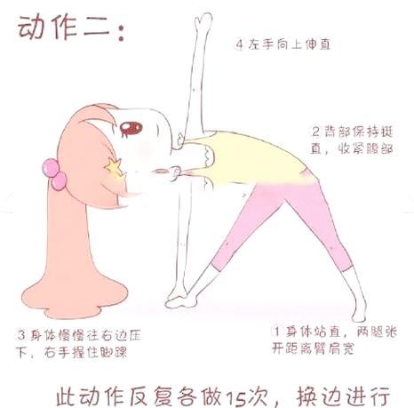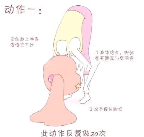 動(dòng)作一:站直身體,雙腳分開(kāi)與肩同寬。緩慢向下壓身,盡量讓上半身貼近腿部。雙手握住腳踝,保持這個(gè)姿勢(shì)反復(fù)進(jìn)行二十次。