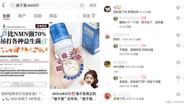 據(jù)新華、鳳凰等主流媒體報(bào)道,香港知名生科企嗅到商機(jī)、迅速鎖定核心專利資源,與科研機(jī)構(gòu)建立起深度原料合作,最終成功推出的“全球首款”口服版“腸輕倍AKK001”一經(jīng)問世,便通過京東、天貓、抖快等平臺(tái)風(fēng)靡江浙滬等一二線城市白領(lǐng)圈。