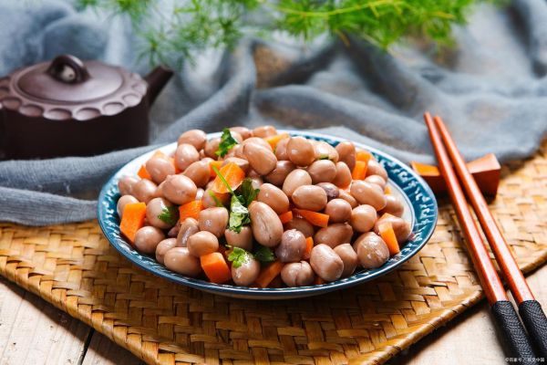 花生米加入八角、桂皮、花椒等香料水煮20分鐘,煮好的花生米軟糯入味,是絕佳的下酒菜。這道小菜制作簡單,可以一次多煮些放在冰箱,隨吃隨取,既解饞又營養(yǎng)。