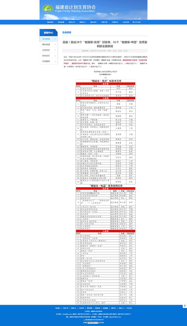 近日,中國(guó)計(jì)生協(xié)會(huì)發(fā)布《關(guān)于2023年度家庭健康主題推進(jìn)活動(dòng)工作情況的通報(bào)》,表揚(yáng)2023年度家庭健康主題推進(jìn)活動(dòng)優(yōu)秀組織地區(qū),公布“健康家·優(yōu)育”好故事和“健康家·味道”優(yōu)秀案例名單。福建省共有69個(gè)案例入選,其中“健康家·優(yōu)育”入圍類作品25個(gè)。我市選送的好故事《踐行家規(guī)家訓(xùn),傳承優(yōu)良家風(fēng)》(漳平市桂林街道黃巧燕)入圍全國(guó)“健康家·優(yōu)育”好故事作品。