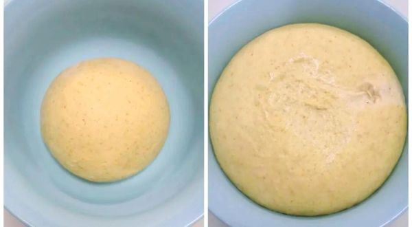 將揉好的面團(tuán)取出,用保鮮膜覆蓋其表面,以確保面團(tuán)的發(fā)酵效果。