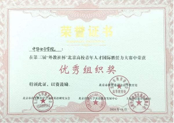 2024年11月2日,第三屆“外教社杯”北京高校青年人才國(guó)際勝任力大賽決賽在中國(guó)人民大學(xué)舉辦。我校代表隊(duì)從容、自信參賽,斬獲二等獎(jiǎng)。我校師生代表將目光聚焦于“女性賦能”這一議題,在孫彥彬、王麗娟老師的悉心指導(dǎo)下,學(xué)生廣泛收集資料、精心撰寫提案、用心制作海報(bào),成功獲得了決賽資格。由 23 級(jí)社會(huì)學(xué)專業(yè)楊炎祺、23 級(jí)女性學(xué)專業(yè)毛翎和格格陶莉所組成的團(tuán)隊(duì),在決賽的舞臺(tái)上作為女院之聲,發(fā)出了為全球女性賦能的時(shí)代強(qiáng)音。三位同學(xué)流暢展示提案、沉著回答評(píng)委和其他參賽隊(duì)伍的提問,最終喜獲二等獎(jiǎng)。孫彥彬、王麗娟兩位老師獲得優(yōu)秀指導(dǎo)教師獎(jiǎng),我校榮獲了優(yōu)秀組織獎(jiǎng),收獲滿滿。獲獎(jiǎng)信息還被澎湃新聞網(wǎng)轉(zhuǎn)發(fā)。鏈接如下