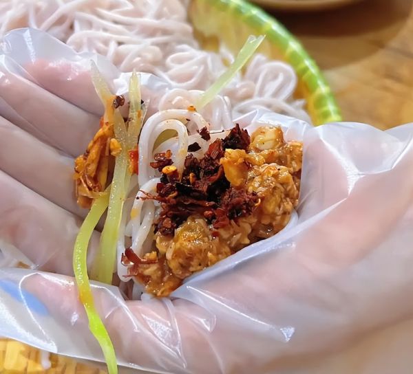 見(jiàn)了上邊這個(gè)吃法,應(yīng)該知道為啥叫過(guò)手米線了吧!其實(shí),就是因?yàn)樗糜檬肿?,所以叫“過(guò)手”。這吃法,看著簡(jiǎn)單,實(shí)則講究得很。米線得選那種又滑又嫩的,調(diào)料也得齊全,少一樣都不行。吃上一口,米線的軟糯、酸筍的酸辣、牛肉的鮮美,全部在嘴里化開(kāi),那叫一個(gè)過(guò)癮!