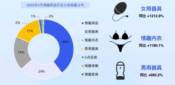 女用器具:2025年4月銷量同比激增1212.9%,高端產(chǎn)品(500元以上)增速達(dá)625.9%,“吮吸類”“震動類”主導(dǎo)市場,大人糖等品牌以設(shè)計美學(xué)和用戶調(diào)研搶占女性市場;