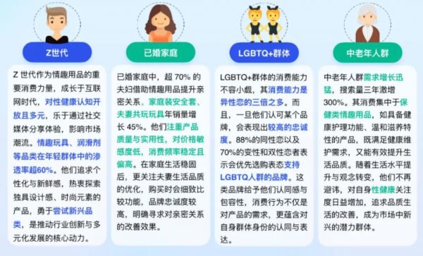 與此同時,中老年市場加速釋放,搜索量三年暴增300%,LGBTQ+群體消費(fèi)力顯著提升,推動市場多元化發(fā)展。