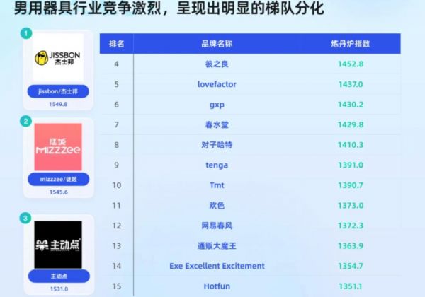男用器具:中高端產(chǎn)品(200-500元)接受度提升,“飛機(jī)杯”“延時類”增長顯著,謎姬等品牌靠高性價比擴(kuò)張;