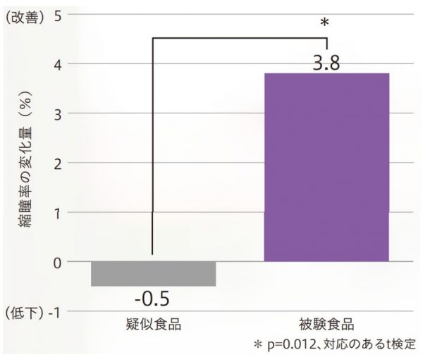 經(jīng)過4周的攝取后,受試者接受了VDT(視覺顯示終端)作業(yè)負(fù)荷測試,并在測試前后進(jìn)行了眼睛焦點(diǎn)調(diào)節(jié)功能的檢查。結(jié)果顯示,攝取藏紅花素的受試者在安靜狀態(tài)下縮瞳率的變化量顯著高于對照組,有效支持眼睛的焦點(diǎn)調(diào)節(jié)功能,緩解因長時(shí)間使用電子設(shè)備而帶來的眼睛疲勞。