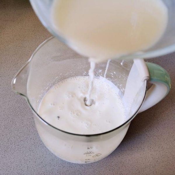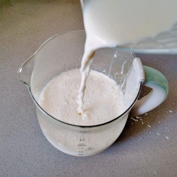 第5步、再把沒有加菌粉的純牛奶倒入養(yǎng)生壺里攪拌均勻。