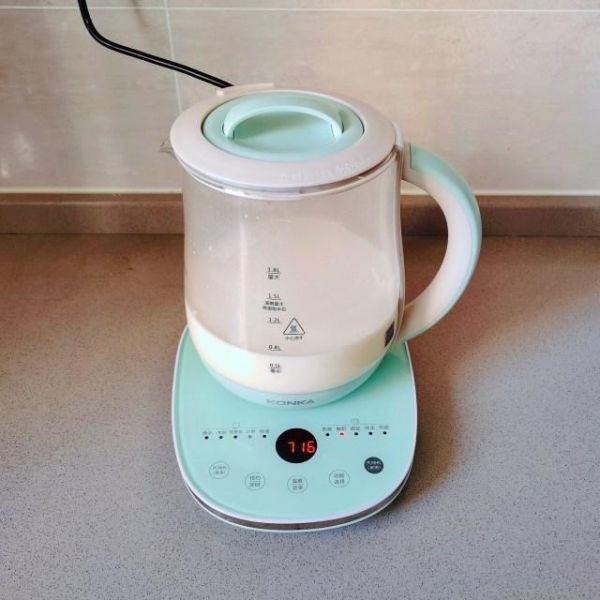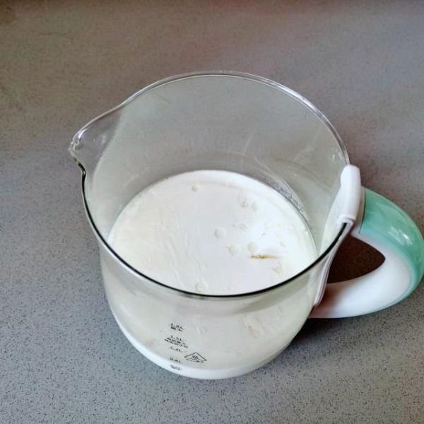第4步、先把加了菌粉的純牛奶倒入養(yǎng)生壺里。