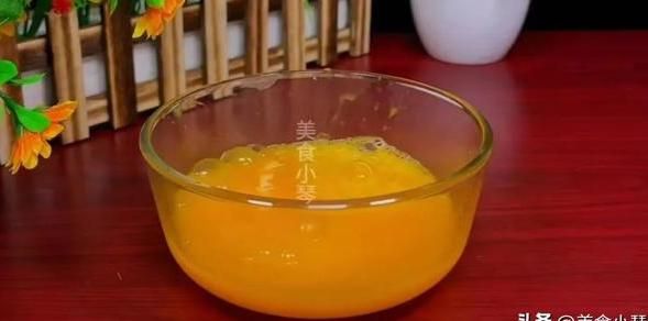 4、將冬筍切成小丁,準(zhǔn)備一個小碗,打入雞蛋并加入適量的食鹽,攪拌均勻備用。