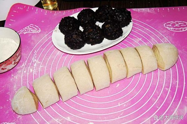 松弛好的面團再揉成長條,均勻地分成若干小面劑子,然后再將面團揉勻。