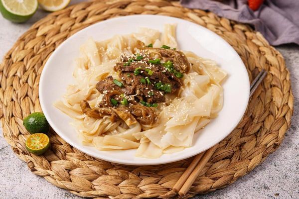 材料和制作:沙河粉的主要食材是大米,通過將米漿蒸成薄粉皮,再切成帶狀進行制作。烹飪時間一般為15到30分鐘。