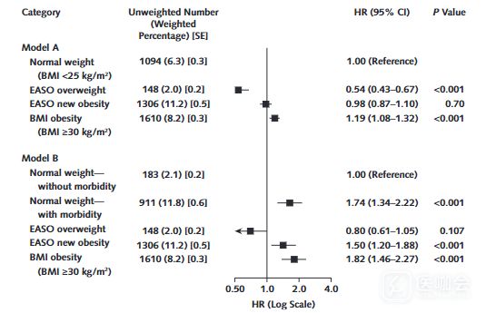 重點(diǎn)關(guān)注那些僅基于BMI被歸為超重,但在EASO新定義下被歸類(lèi)為肥胖的人群的死亡風(fēng)險(xiǎn)。