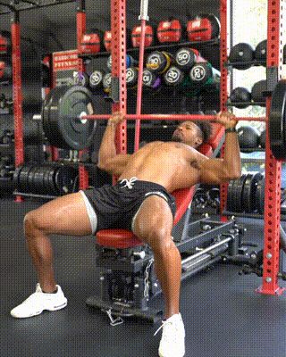 此過程中胸部上部肌肉會得到拉伸,隨后用力推起杠鈴,直至手臂伸直,但要避免肘關(guān)節(jié)完全鎖死,如此反復(fù)進行動作。