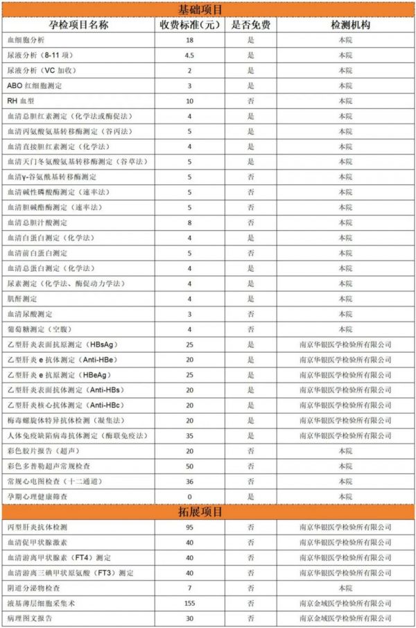 【導(dǎo)語】:以溧水區(qū)永陽街道社區(qū)衛(wèi)生服務(wù)中心為例,血細(xì)胞分析、尿液分析、紅細(xì)胞測(cè)定等免費(fèi)孕檢項(xiàng)目。