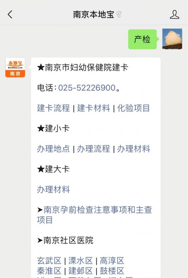 溫馨提示:微信搜索公眾號(hào)南京本地寶,關(guān)注后在對(duì)話框回復(fù)【產(chǎn)檢】可獲南京懷孕建卡辦理材料、流程、檢查項(xiàng)目、轉(zhuǎn)卡指南、流程等信息。