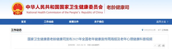 國(guó)家衛(wèi)生健康委老齡健康司發(fā)布2025年全國(guó)老年健康宣傳周海報(bào)及老年心理健康科普視頻