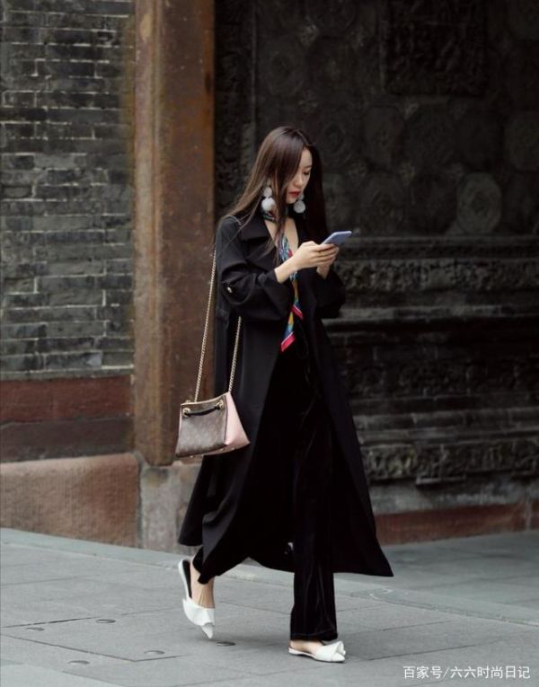 4、黑色風(fēng)衣+黑色闊腿褲