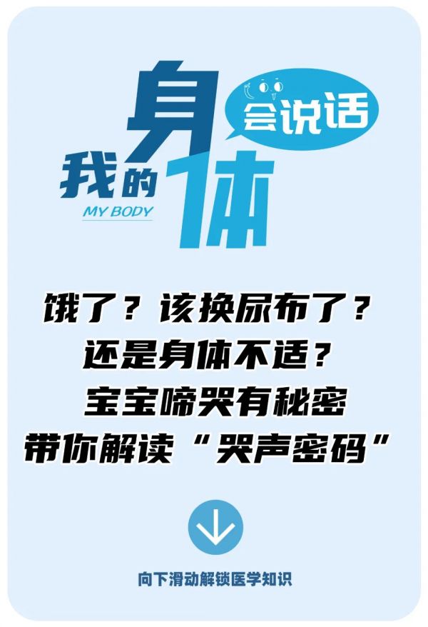 當然,在日常生活中,寶寶也可能因各種感染性疾病、尿布皮炎、喂養(yǎng)不當、乳糖不耐受癥、牛奶蛋白過敏、腸套疊等導致病理性啼哭。點擊下方視頻,觀看每日商報“我的身體會說話”小視頻,專家告訴你如何甄別健康哭聲,教你讀懂寶寶的“哭聲密碼”。