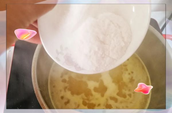 將榨取的橙汁倒入鍋中,加入100克清水和一勺蜂蜜,然后開火煮沸。接著,將適量的白涼粉慢慢倒入鍋中,同時用攪拌器充分攪拌均勻。當(dāng)鍋中的混合物再次煮沸時,即可關(guān)火。