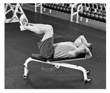 將平放的可調(diào)節(jié)訓(xùn)練椅的頂端抬起,使其稍微傾斜。躺在椅子上,使髖部低于頭部,抓住椅子頂端以獲得支撐。將髖部和膝蓋彎曲呈90度。抬起髖部并向內(nèi)收縮,就像要倒空骨盆上的一桶水一樣。髖部和膝蓋保持90度。停留片刻后放下髖部,再重復(fù)動(dòng)作。