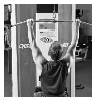 坐姿,雙手握好橫杠,背部做出反弓的姿態(tài),上身略微后傾。接著將橫杠拉到,胸部的正上方。當(dāng)和鎖骨在同一高度時(shí),停頓一下,然后再收力,讓橫桿慢慢的回到,最初的位置。然后重復(fù)上面的動(dòng)作。