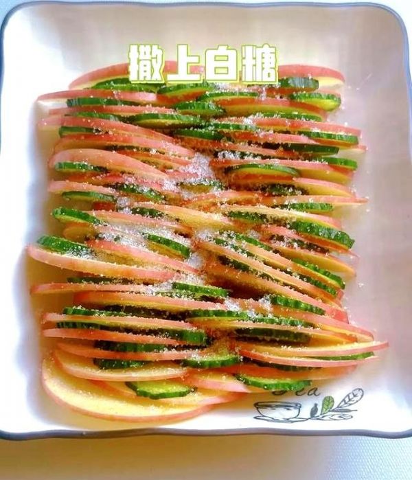 翠綠的黃瓜,雪白的蘋果,再撒上一點(diǎn)白糖,簡(jiǎn)直就是夏日里的一抹清新!