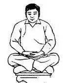 要領(lǐng):兩腳均在另一條大腿上,腳底向上,雙膝在同一水平線上,身體挺直。