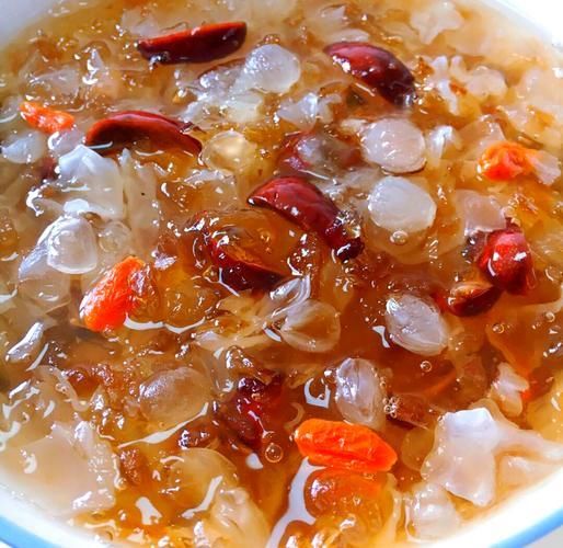 經(jīng)過一小時的精心燉制,紅蓮杞棗燉皂角米終于可以出鍋品嘗了。