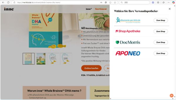 inne產(chǎn)品在Shop Apotheke、Docmorris等合作藥房線上可購買