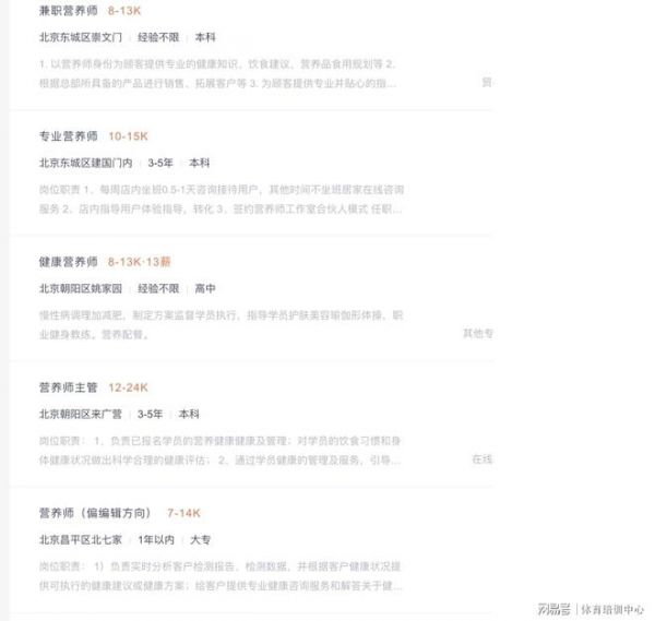 學校、幼兒園、賓館、飯店、運動隊、食品企業(yè)、健身俱樂部、美容院、社區(qū)、養(yǎng)老院等都對營養(yǎng)師有強烈的需求,這一需求量至少要在400萬人以上。歐美發(fā)達國家平均每300人就有1名營養(yǎng)師,而我國擁有14億的龐大人口,在冊的全部運動營養(yǎng)師卻不足4000人,運動營養(yǎng)師需求存在巨大的缺口。因此,如果對運動營養(yǎng)師這個職業(yè)感興趣,可以抓住機遇,通過不斷學習和提高自己的專業(yè)水平,成為這個領域的專業(yè)人才。
