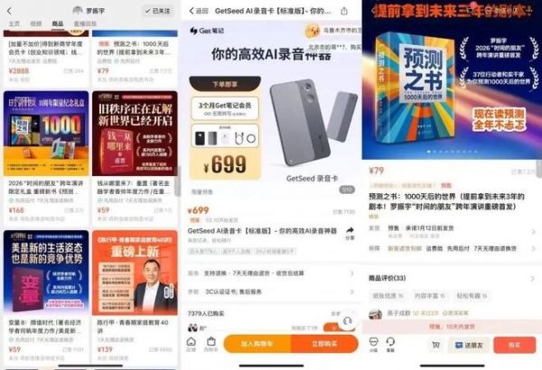 本屆跨年演講當(dāng)晚在抖音收獲800萬人次觀看,在視頻號的觀看人次則超過3200萬。但更引人注目的是其空前的商業(yè)化密度。演講獲得了包含騰訊元寶、問界、飛書在內(nèi)的11家品牌贊助。在內(nèi)容中,廣告植入被刻意轉(zhuǎn)化為案例,羅振宇更直接帶貨其公司新產(chǎn)品——售價699元的AI錄音卡“GetSeed”,1萬份迅速售罄;其新書《預(yù)測之書:1000天后的世界》在各渠道銷量亦突破10萬冊。