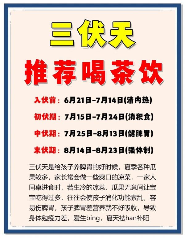 三伏天是養(yǎng)生的黃金時期,千萬別錯過哦!古人云“冬練三九,夏養(yǎng)三伏”,可見其重要性。今天給大家推薦幾款適合三伏天的茶飲,趕緊收藏起來吧!