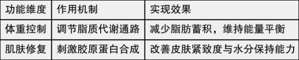 以下為產(chǎn)品在體重控制與肌膚修復(fù)方面的作用對照: