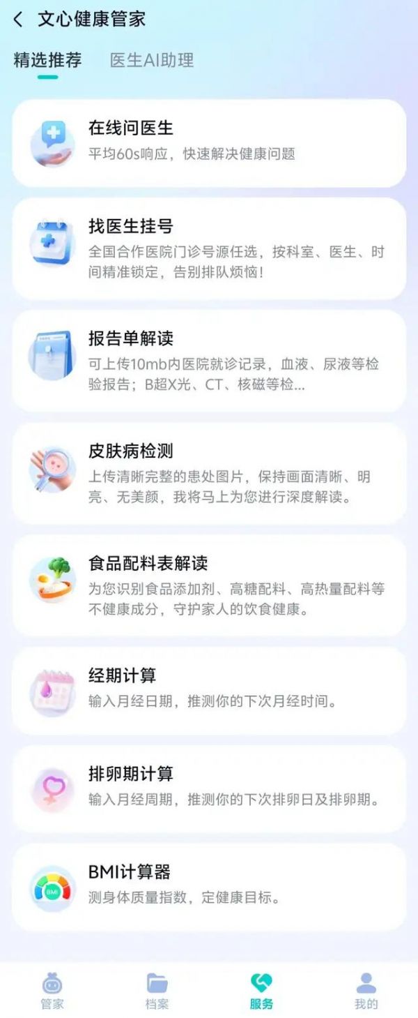 這一輪AI醫(yī)療重啟,百度的姿態(tài)明顯更為克制。 新推出并反復(fù)迭代的AI服務(wù)產(chǎn)品「文心健康管家」,被嵌入百度App的搜索體系之中,強調(diào)專業(yè)醫(yī)學(xué)能力與大模型結(jié)合,其定位更像搜索體驗的延展,而非獨立的健康入口。