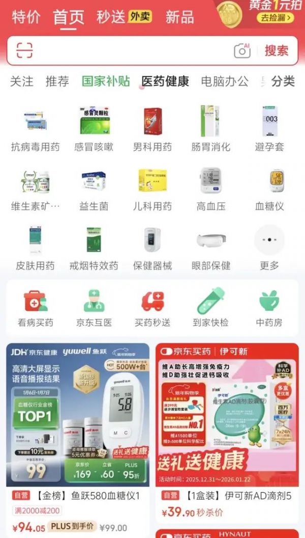 ▲醫(yī)療健康被放在京東App首頁的顯要位置