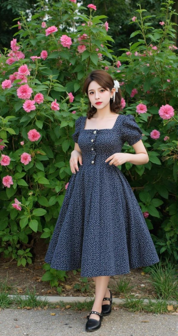 挑選一件波點(diǎn)連衣裙時(shí),可以根據(jù)自己的膚色來決定底色和圓點(diǎn)的顏色。淺膚色的人適合選擇深色底色加上白色圓點(diǎn)的組合,而深膚色的人則更適合明亮底色搭配黑色圓點(diǎn)的設(shè)計(jì)。除此之外,還可以通過改變?nèi)棺娱L度(如及膝或過膝)、袖子樣式(如泡泡袖或無袖)等方式,創(chuàng)造出更多變化。配上一雙瑪麗珍鞋,再戴上一副珍珠耳環(huán),仿佛從老電影中走出的女主角般迷人。