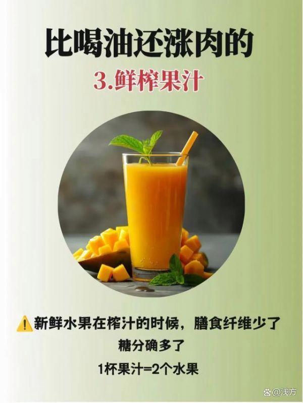 鮮榨果汁看似健康,但在榨汁過程中,水果的膳食纖維被破壞,糖分卻高度濃縮。一杯果汁的熱量相當(dāng)于兩個水果,喝下去后飽腹感卻很低。我的建議是,直接吃水果,既能補(bǔ)充纖維,又能避免攝入過多糖分。