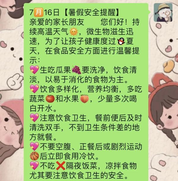各位家長朋友們,隨著7月16日持續(xù)高溫天氣的到來,咱們寶貝的暑假生活也進(jìn)入了最炎熱的時段。為了確保寶貝們在家的飲食安全,作為班級管理者,我想和大家分享一些關(guān)于食品安全的溫馨提醒,讓我們一起為寶貝的健康保駕護(hù)航。