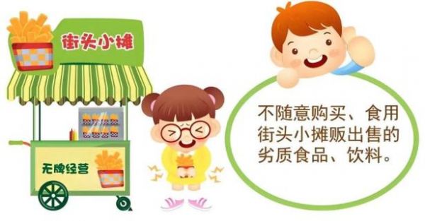 4.不買無證攤販的食品,不買無商標或無生產日期、無生產單位、無保質期等標簽不完整的食品;不到無證攤點、快餐店、小店購買食品或用餐。及時處理家中發(fā)霉變質、污穢不潔、超過保質期的食品。
